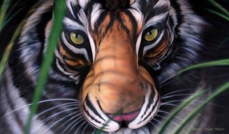 Наверняка, вы уже видели эту картинку. Но ни когда не думали что это и как это было сделано. Лично я, впервые увидев, подумал, что это очень красиво, нарисованный тигр. И даже не догадывался, что тигра сделали из трёх обнажённых моделей. Знаменитый боди-арт художник Craig Tracy, нарисовал данное чудо более 2 лет назад. Некоторые до сих пор, считают, что это лучший боди-арт художник и лучшая картина.