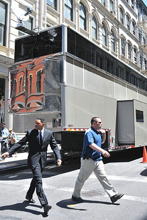 Шикарный домик, не чего тут сказать. Многие люди живут в домах и квартирах намного скромнее. Ну что тут поделаешь, Уилла Смита звезда и может себе позволить. Компания-производитель "Anderson Mobile Estates" с радостью помогает, в обеспечении комфорта и роскоши, где бы вы ни были. Ведь именно она строит даже не дома, а особняки на колёссах. Will Smith за свой, выложил 1800000 долларов, это, к примеру, дом в Дубае или на "Рублёвке". Итак, перейдём к освещению некоторых характеристик. Тягач, насколько я понимаю, фирмы International. Длинна состава 17 метров, жилая площадь, более 300 квадратных метров, вес 30 тонн. Внутренняя отделка из дорогих пород дерева и кожи. В доме несколько комнат включая гостиную, спальню, спортзал и гранитный туалет. За всю электронику отвечает система "умный дом", при помощи сенсорного экрана можно всё выключить и включить. Данные фотографии и видео сделаны на улицах Нью-Йорка, неподалёку от съёмочной площадки фильма "люди в чёрном 3". Не успел простоять и несколько дней, как на припаркованный "дом" написали жалобу жильцы дома. Уилл Смит, после этого, отогнал своё чудо на парковку и снял квартиру.