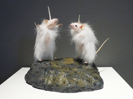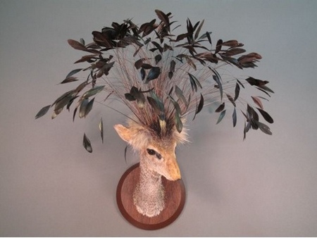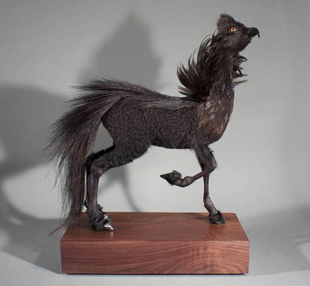 Сразу поясню, Таксидермия — способ изготовления чучел животных, основой при котором является шкура животного. Она натягивается на некую основу, а полость внутри заполняется наполнителем. В основном таксидермия применяется для изготовления музейных экспонатов, а также для сохранения охотничьих трофеев. То что, творит этот человек, могло прийти в голову только безумцу и ещё наверное доктору Франкенштейну. Его экспонаты вызывают противоречивые чувства, как восторг так и отвращение. Своими работами он выражает протест против генной инженерии, химического воздействия и вырубке лесов. Интересно узнать мнение "зелёных" о его искустве. Любой желающий может приобрести себе одну из этих "химер", цена начинается от 80000 $ за штуку.