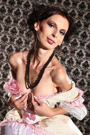 Западные СМИ называют эту женщину "песочными часами". 30 летняя Иона Спангенберг имеет, одну из самых маленьких талий в мире, всего 50 сантиметров. Рост девушки 167 сантиметров, а вес 38 килограмм. По словам самой Ионы, она ни когда не хотела быть такой худой. Тем более на её родине Румынии, девушкам модно быть немного пухленькими. Страшно представить, когда ей было 13 лет, размер талии составлял всего 15 сантиметров. Иона Спангенберг до этого юного возраста, была совсем обычной девчонкой. Но как будто что-то случилось и сколько бы она не ела, всё равно вес не набирался. Она просто не знала, что можно есть по ночам и наедаться перед сном . Иона до сих пор кушает три раза в день, и балует себя шоколадом, пиццей, чипсами и прочим. Но вес так и не набирается. Как она сама думает, это может быть из-за её сверх малого желудка. Но посмотрев на неё, можно подумать, что и все другие органы, в её теле очень малы. Бедная девушка очень комплектовала, из-за своего не здорового внешнего вида. Пока в 2006 году, не повстречала своего мужа. А уже он в свою очередь предложил Ионе стать моделью, и она её стала. Теперь девушка знаменита и счастлива, но всё равно хочет хотя бы чуть-чуть поправится.