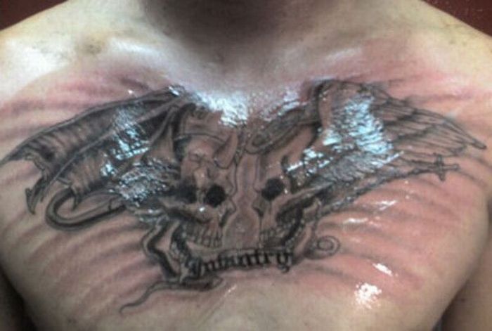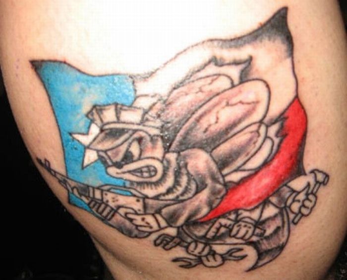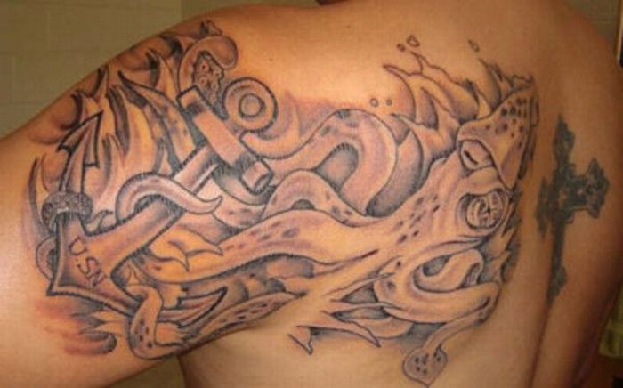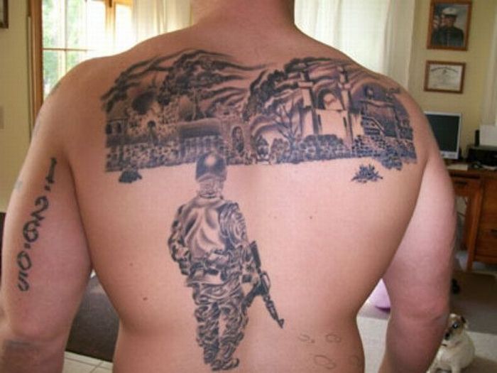 Как известно татуировки несут в себе, определённый смысл и их делают определённые группы людей. Вот, например тату военных из разных вооружённых сил США. Эти нательные рисунки порой занимают большую часть тела, и рассказывают о конкретном случае из жизни военного. Ну, или просто сделаны красиво и с фантазией.
