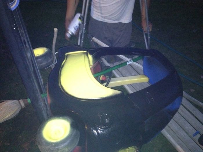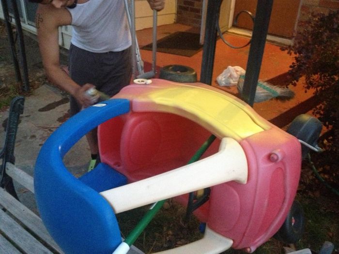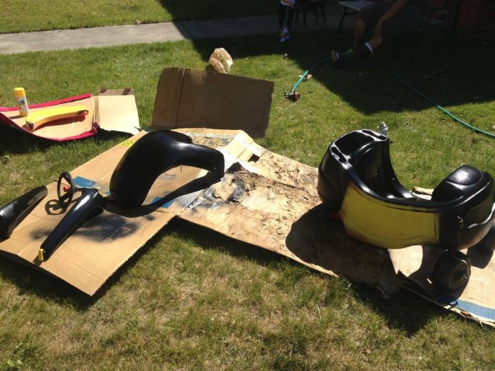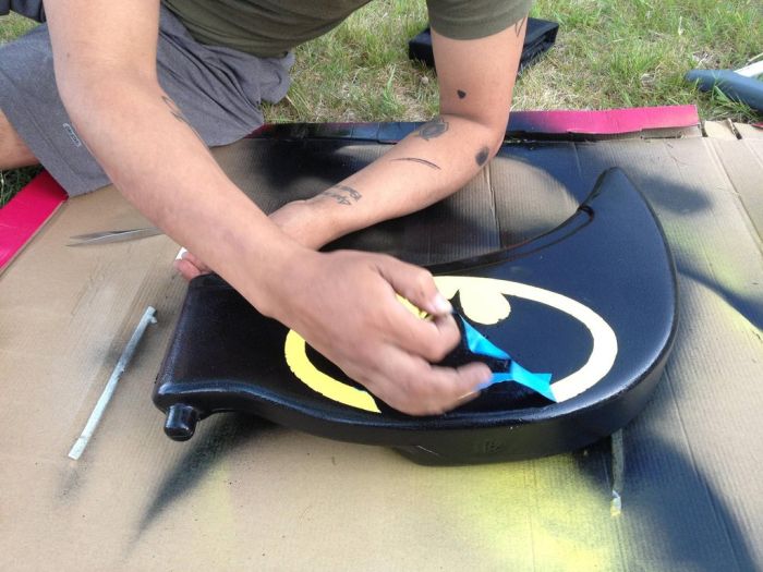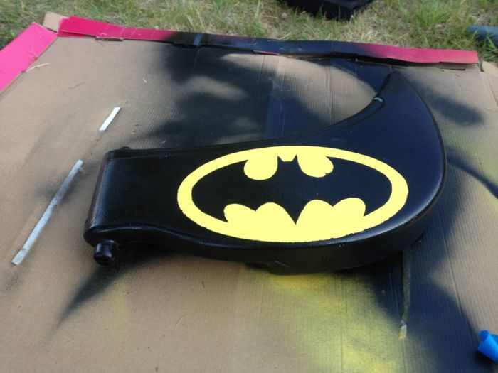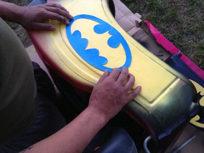 перекрасить поверхность и сделать эмблемы супер героя. Малыш остался доволен,
