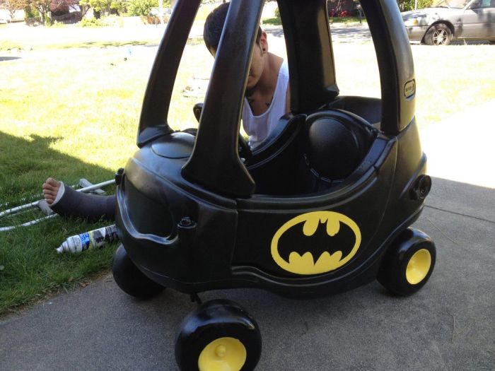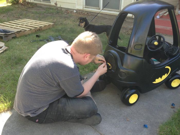 машинку для детей и сделать из неё бетмобиль. Для этого потребовалось грамотно