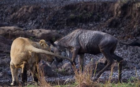 Дикая природа - это постоянная борьба за выживание! Кто-то охотится, а кто-то пытается, не стать добычей. Вот и эта резвая особь антилопы гну, боролось с львицей. И, казалось бы, счастье было уже близко, у львицы она отстояла право на жизнь. Но пришёл лев и съел антилопу. Не справедливо? Это законы дикой природы, и там выживает сильнейший.