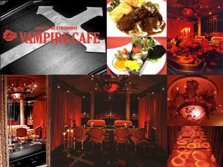 В знаменитом торговом районе Гиндза, японской столицы Токио, есть масса магазинов, ресторанов и кафе. Но особое внимание можно остановить на вампирском кафе. Здесь вся тематика и экстерьер выполнен в готическо-вампирском стиле. Начиная от одежд официантов и заканчивая блюдами. Атмосфера перенесёт вас в мир фильмов про Дракулу и других вампиров. Да и цены здесь вроде бы нормальные, хорошо и интересно покушать вы можете вложиться в 3000 наших рублей. Музыка эпохи Барокко, так же придаёт особую изюминку. В меню блюда из традиционных кухонь Италии, Японии и Франции. Названия блюд и напитков, так же переделаны, и больше напоминают кровавый корм вампиров. Так, что если будете в Токио, не проходите мимо этого интересного кафе.