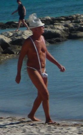 Сервис дедушка попал в объектив фотоаппарата на одном из пляжей США. У нас есть чудаки старички, но таких оригиналов как этот я не встречал и не видел. Интересно, в каком магазине, старичок приобрёл данный купальный костюмчик. А может он сам его сшил?