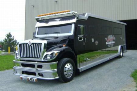 В США есть автомобильная компания Armor Horse, которая и создала Vault XXL Armored Limousine. Внутри пуленепробиваемого клуба на колёсах, есть всё для отдыха и веселья: барная стойка, шест для стриптиза, туалет со сливом, раковина, один 35 дюймовый плазменный и четыре 15 телевизора с возможностью подключения к ним iPhone или iPad, ну и бронирована панель между салоном и водителем. Сам Vault XXL был создан на базе одного из автомобилей компании Navistar International. Вспомните по фильмам, американские школьные автобусы или автобусы для перевозки заключённых, похоже, что какой-то такой, и был переделан в Vault XXL Armored Limousine. Этот автомобиль продавался на ebay, хотя сам сегодня смотрел и ни чего не нашёл похожего, может уже купили лихие тусовщики. Говорится что в Vault XXL 36 посадочных мест, но мне кажется, что меньше, судя по фото. Ах да, забыл про цену, его продавали всего за 175 000$.