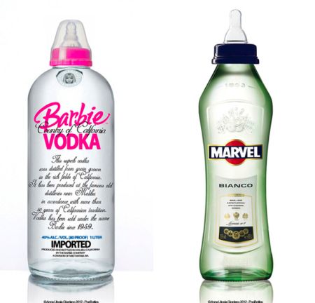 Художник Anna Utopia Giordano создала серию бутылочек с интересным дизайном. Как можно догадаться, бутылочки напоминают бутылки из-под алкогольной продукции известных мировых брендов. На этикетках красуются знаменитые фирмы детской индустрии. Сама художница, делала эти бутылки с девизом "Родители кормите своих детей ответственно". Это намек женщинам, что не соблюдают детскую диету и пьющим алкоголь во время грудного кормления. Конечно, очень плохо, когда родители, особенно матери, безответственны.