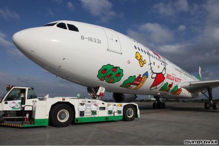 Наверняка и в России множество людей знают и любят мультфильмы Hello Kitty. Помимо того что это очень славный и добрый мульт, Hello Kitty стал весьма популярным и дорогим брендом. Может вспомните, что даже в телевизионной рекламе макдоналдса использовали персонажей из этого мультика. А у нас на сайте есть материал и про Роддом Hello Kitty. Так вот тайваньская авиакомпания EVA Air, решила снова пусть по регулярным рейсам самолёты Hello Kitty. Да да, такой воздушный транспорт, курсировал уже с 2005 по 2009 год. По официальным данным, тогда просто истёк срок контракта с правообладателем, японской компанией Sanrio. А я так догадываюсь, что кризисные явления не позволили платить за лицензию на Hello Kitty. Теперь, по крайней мере один год, по азиатским странам из Тайбэя будут летать три самолёта Airbus A330-300s. Не знаю, может кому пригодится, выкладываю точные рейсы: