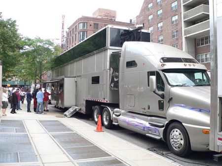Шикарный домик, не чего тут сказать. Многие люди живут в домах и квартирах намного скромнее. Ну что тут поделаешь, Уилла Смита звезда и может себе позволить. Компания-производитель "Anderson Mobile Estates" с радостью помогает, в обеспечении комфорта и роскоши, где бы вы ни были. Ведь именно она строит даже не дома, а особняки на колёссах. Will Smith за свой, выложил 1800000 долларов, это, к примеру, дом в Дубае или на "Рублёвке". Итак, перейдём к освещению некоторых характеристик. Тягач, насколько я понимаю, фирмы International. Длинна состава 17 метров, жилая площадь, более 300 квадратных метров, вес 30 тонн. Внутренняя отделка из дорогих пород дерева и кожи. В доме несколько комнат включая гостиную, спальню, спортзал и гранитный туалет. За всю электронику отвечает система "умный дом", при помощи сенсорного экрана можно всё выключить и включить. Данные фотографии и видео сделаны на улицах Нью-Йорка, неподалёку от съёмочной площадки фильма "люди в чёрном 3". Не успел простоять и несколько дней, как на припаркованный "дом" написали жалобу жильцы дома. Уилл Смит, после этого, отогнал своё чудо на парковку и снял квартиру.