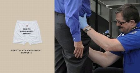 В ответ на то, что во многих аэропортах США, установлены и устанавливаются раздевающие сканеры,было выпущенно антирентгеновское бельё. Ассортимент следующий: футболки, трусы, лифчики и носки. На всех этих изделиях, напечатан текст четвёртой поправки в конституции США. В ней то и говорится о том что запрещено произвольно обыскивать и арестовывать. Антирентгеновский эффект, добивается тем что в чернилах используется металлическая добавка. Ну вот вам просканировали трусики, и охранник сразу же вспомнил о четвёртой поправке. Много было возмутившихся людей, протестующих против этих раздевающих сканеров. Но такие меры, правительства Америки, можно и понять. В принципе можно и отказаться от сканера, но уже тогда охранник будет общупывать все ваши интимные места.