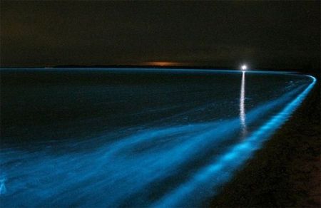 Данные фотографии сделаны, в месте под названием Gippsland Lakes, Австралия. Gippsland Lakes - сеть небольших озер, болот и лагуны. Gippsland это один из районов штата Виктория. Так вот, одно из озёр, ни с того, не с сего, начало светится. Сервис феномен природы, объясняют активностью неких микроорганизмов (ну может брачный период или ещё что). Вода приобрела необычные свойства на маленьком участке возле берега. Главное, что бы всё это не оказалось банальным выбросом вредных веществ. Ведь по соседству располагается один из красивейших пляжей мира, длинной в 99 километров.