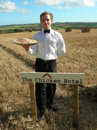 Данный отель открыл простой, 31 летний, учитель математики David Roberts. Преподаёт в одной английской школе Boskenwyn Community Primary School. На данный шаг его подвигло, собственное увлечение. Он увлекается разведением куриц. В Англии сейчас модно заводить куриц как домашних питомцев. Техпомощь альтернатива кошкам и собакам. Здесь владельцы могут оставить своих любимцев всего за 5 евро в день. Это место можно назвать с уверенностью, куриным раем. Здесь есть всё, для яиц, циплят и взрослых курочек. Несколько инкубаторов, своеобразная детская для цыплят, и огромный выгон, по которому весь день курочки блуждают в своё удовольствие. Ночью они собираются и усаживаются на насесты. Кормят отборным зерном и комбикормом. Оригинальный бизнес. За что мне и нравятся европейцы, они всегда знают, что могут заработать, в отличие от наших обычных трудяг, кои трясутся за свою работу, готовые выполнять всё что скажут.