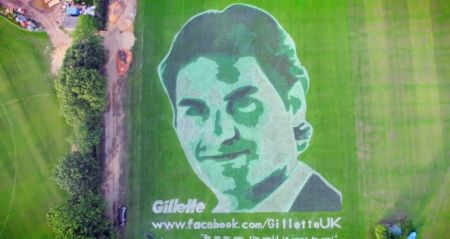 Как же я люблю западных рекламщиков, за создание столь интересной рекламы. Честно говоря, с интересом смотрел весь ролик, от начала до конца. Для раскрутки новой бритвы Fusion ProGlide, компания Gillette, выбрала образ знаменитого швейцарского теннисиста Roger Federer. Неподалёку от Лондона, фан группа из Facebook, при помощи лазерного моделирования, нарисовала на газоне огромный портрет чемпиона, размером 2800 квадратных метров. Использовалось 3000 литров экологически чистой краски, и 1000 литров пены. Контуры бороды и усов, затемнили, наложили пену и побрили. Получилось очень здорово, как будто щетину убрали не с газонного портрета, а с живого человека. Да что тут я вам рассказываю, всё это можно увидеть на картинках и в видео ролике. Думаю Роджеру Федереру, самому понравилась данная идея.